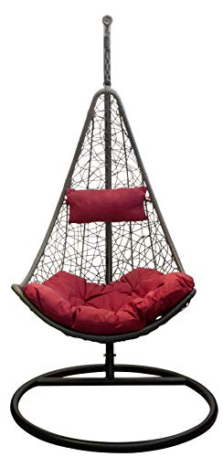Aufstellmaße Korb mit Gestell: Durchmesser 104 Zentimeter / Höhe 195 Zentimeter / Gesamtgewicht 25 Kilogramm, Schwingliege aus wetterfest pulverbeschichtetem Stahlrohrgestell (Farbe schwarz), langlebig und ideal zum Entspannen für Lounge, Terrasse, Garten oder Balkon, Hängesessel inklusive Polsterung bestehend aus Sitzkissen und Kopfkissen aus Spun-Polyester 290gr/m² (Farbe rot), der Hängestuhl besteht aus einem robustem Geflecht aus Poly-Rattan in anthrazit, zugelassene Tragkraft bis 150 Kilogramm, unkomplizierter, blitzschneller Aufbau: lange Stange in rundes Bodenstück einführen, 2 Schrauben festziehen, Bolzen mit Feder einhängen, Korb einhängen, fertig